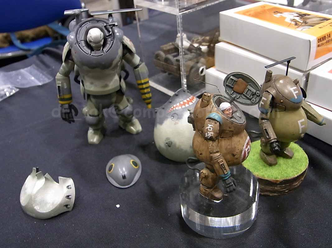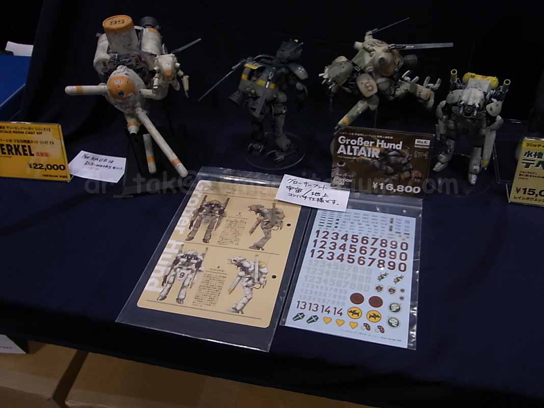Video Clip: In the foreground is the gorgeously detailed Schenkel, while something is Neuspinning in the background. The masked person you see briefly in the mirror under the model is the meticulous Bowshiya-san! Next mandatory stop was of course Arpeggio, who sells the popular BRICKWORKS figures.